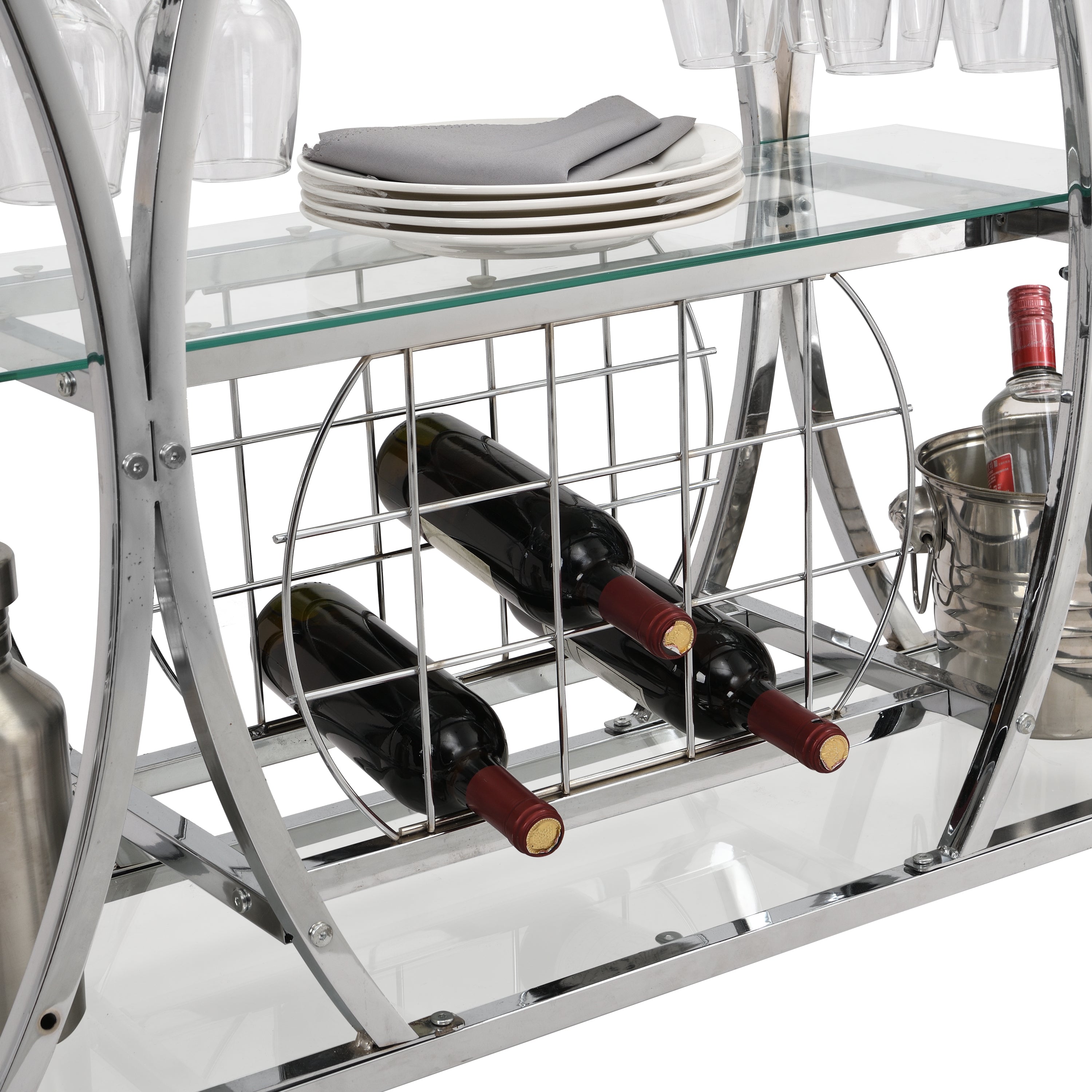 1. BOTTLE RACK AND WINE GLASS STORAGE: this bar cart features three levels for storing wine or placing trays, with 11 bottles and 16 wine glass rack.
