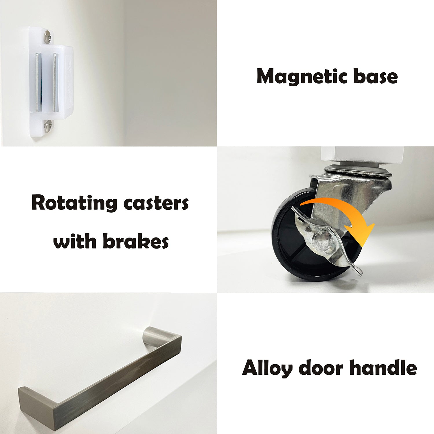 【Extra Space for Towel】:This white kitchen island has a towel rack on one side, you can easily pick up kitchen towel or tissue, it also can be used as a handle when you move this cart.