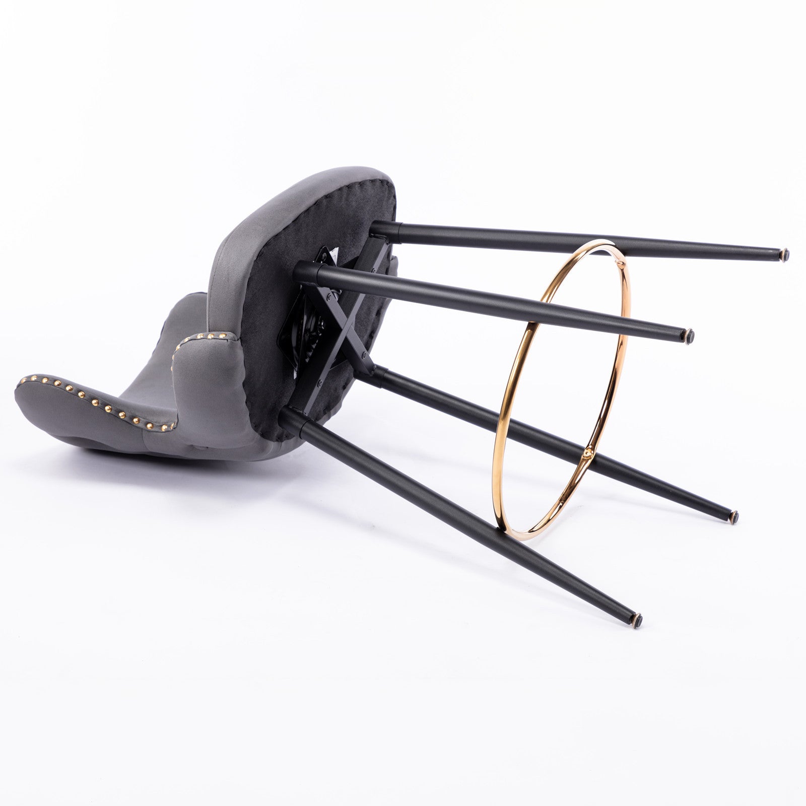 A&A Furniture,29" Modern Leathaire Fabric bar chairs,180° Swivel Bar Stool Chair for Kitchen,Tufted Gold Nailhead Trim Gold Decoration Bar Stools with Metal Legs,Set of 2 (Dark Gray)