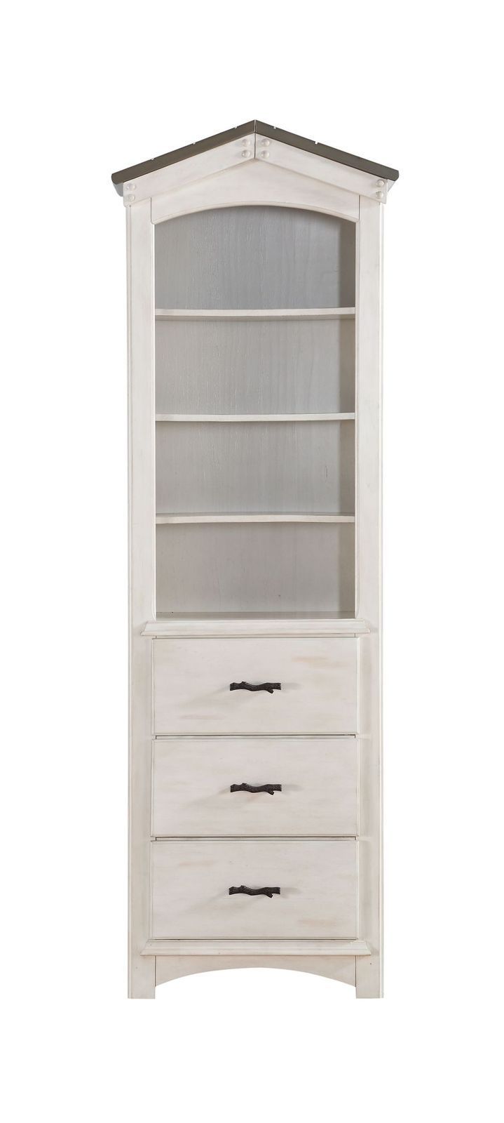 This Tree House Bookcase Cabinet will be a great addition to the matching loft bed. With the weathered white and washed gray finish, the design is unique and beautiful. Featuring abundant storage spaces, this cabinet will sure to accompany perfectly with the bed.