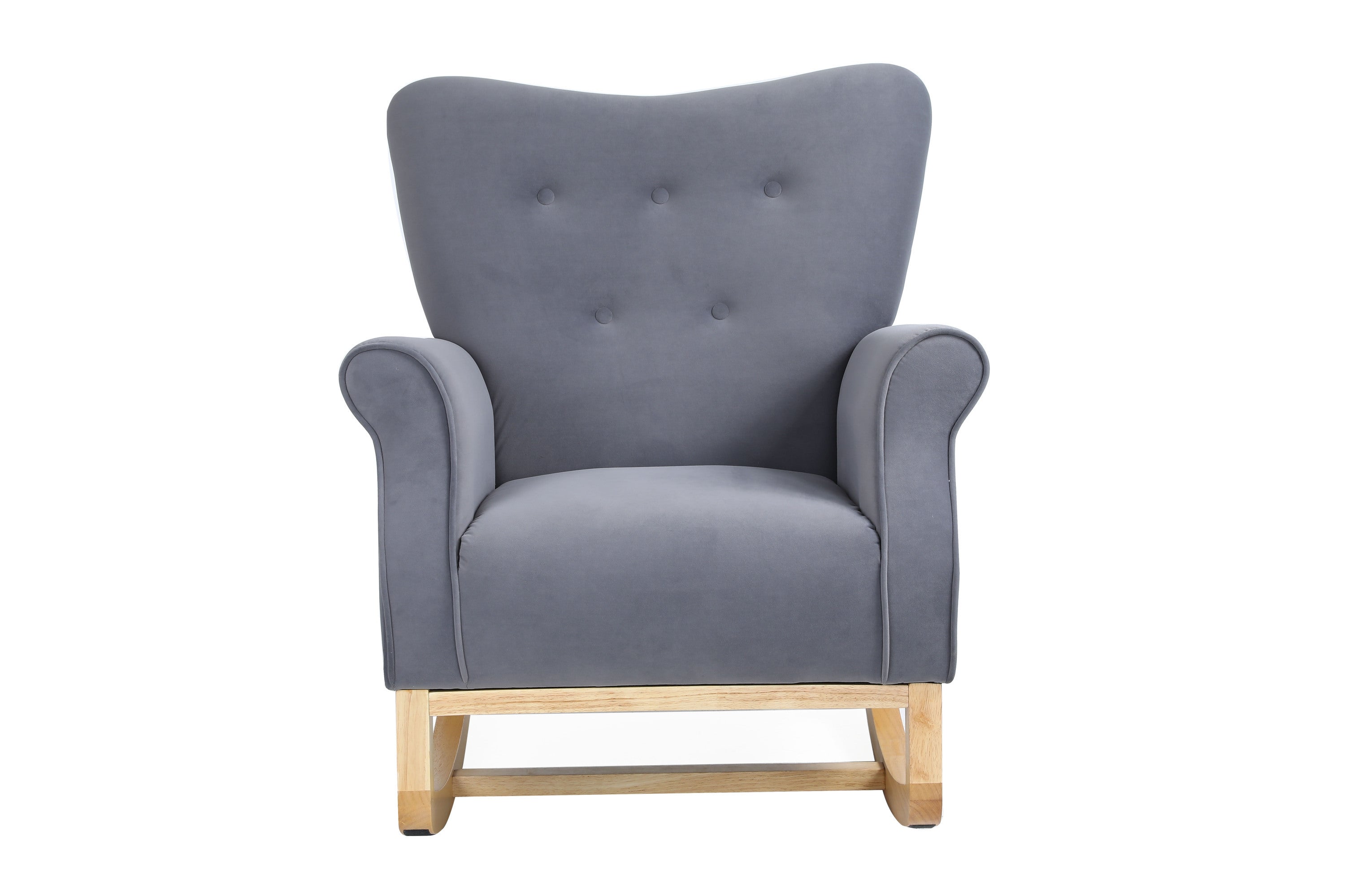 Modern Rocking Chair, Upholstered Accent Chair for Nursery, Playroom, Bedroom and Living Room, Small Contemporary Rocker, Kids Cushioned Arm Chair, Grey